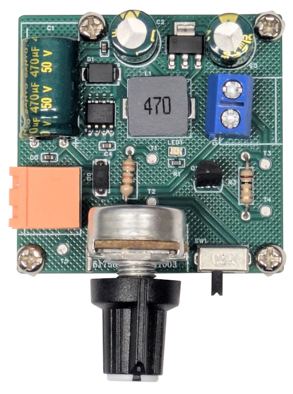 - The power circuitry uses a standard positive voltage switching regulator.