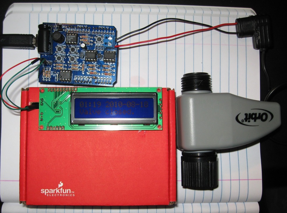 As for sketch code, refer to my previous posts for code to control the valve and read input buttons. To interface with DS1337 RTC, I use this excellent RTC library.